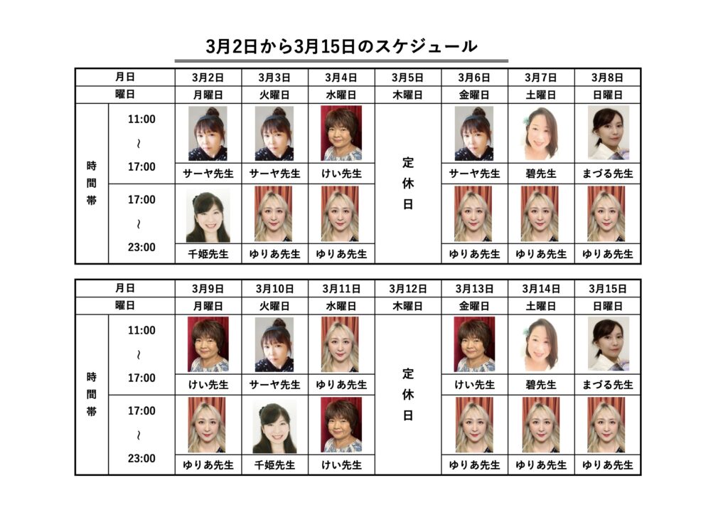 🗓️占い師のスケジュール